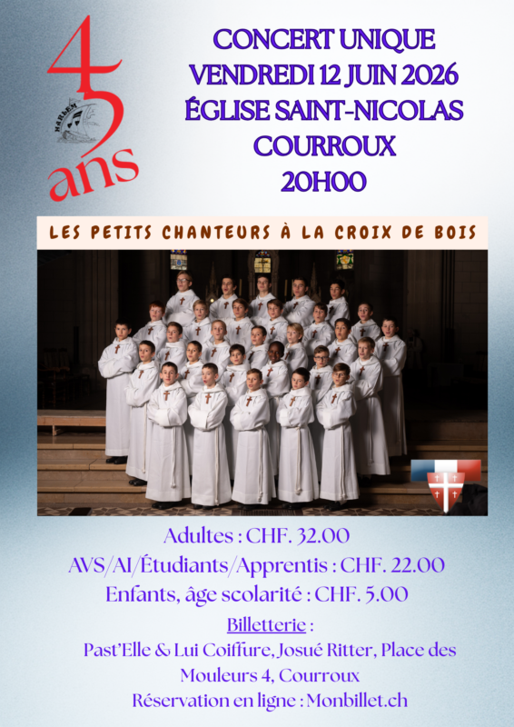 Nous aurons le plaisir de recevoir, chez nous, en concert exceptionnel « Les Petits Chanteurs à la Croix de Bois ». Si nous levons déjà le voile aujourd’hui, c’est parce que la billetterie sera ouverte le vendredi 12 décembre 2026, donc demain !!!!